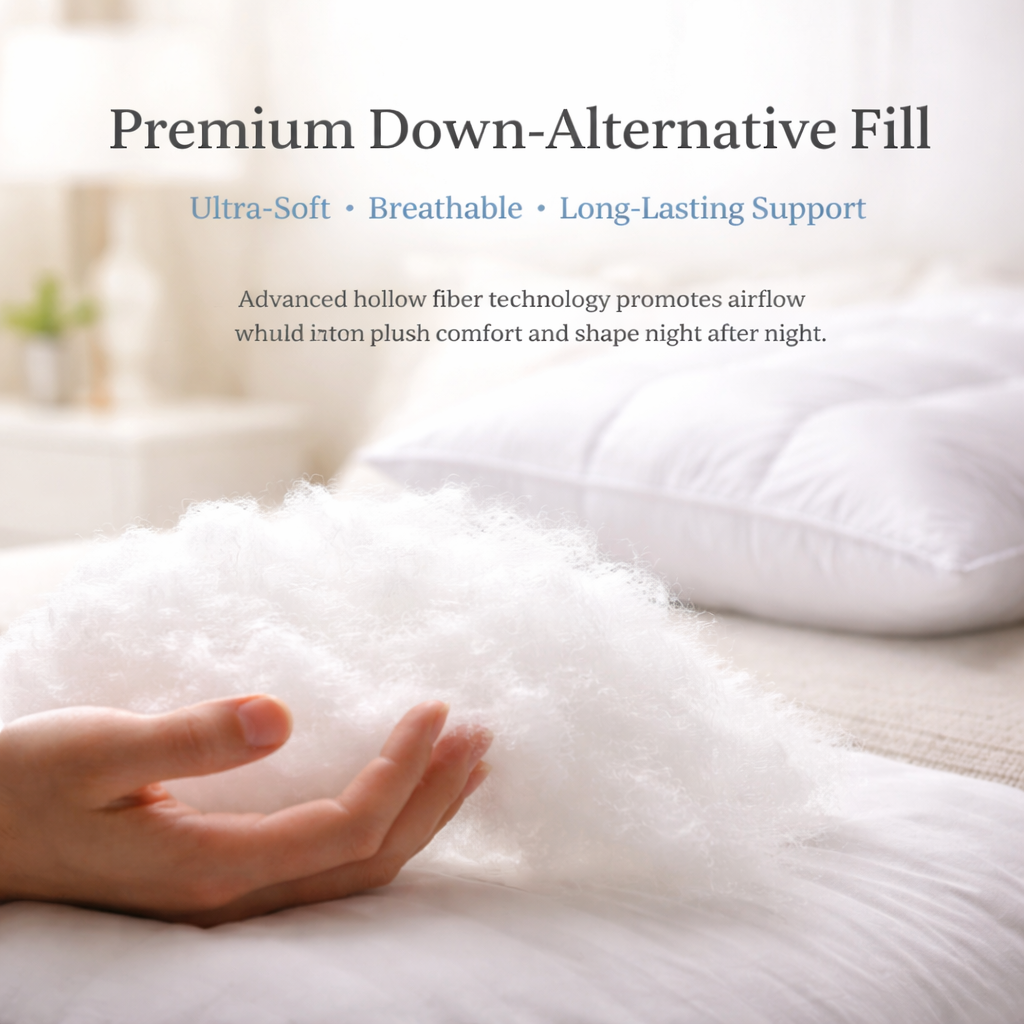 We utilize high-quality down alternative fill to deliver that sought-after 5-star hotel luxury without the maintenance of real feathers. It provides a soft, breathable surface that remains plush all night long, ensuring you enjoy a restful sleep environment that feels incredibly premium against your skin.