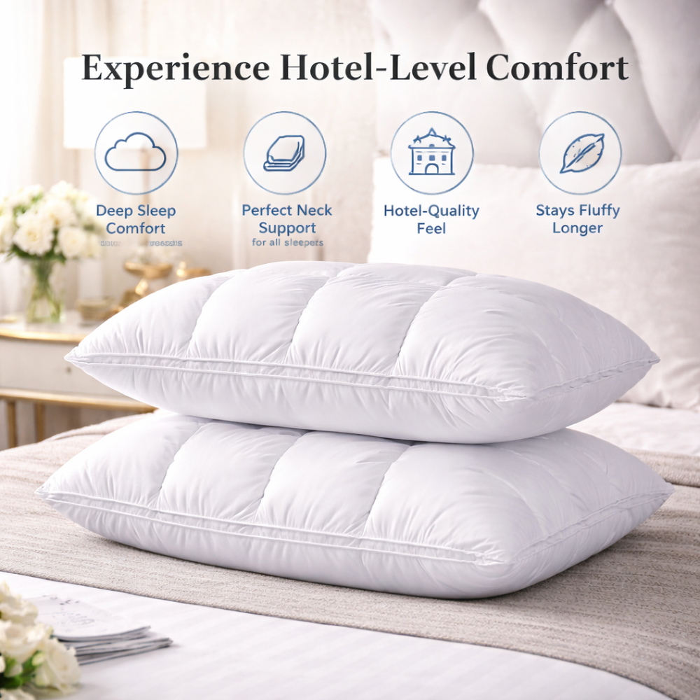 Our premium down-alternative design offers a customizable 5-star hotel experience that perfectly adapts to every sleeping position for unmatched neck support and lasting durability.
